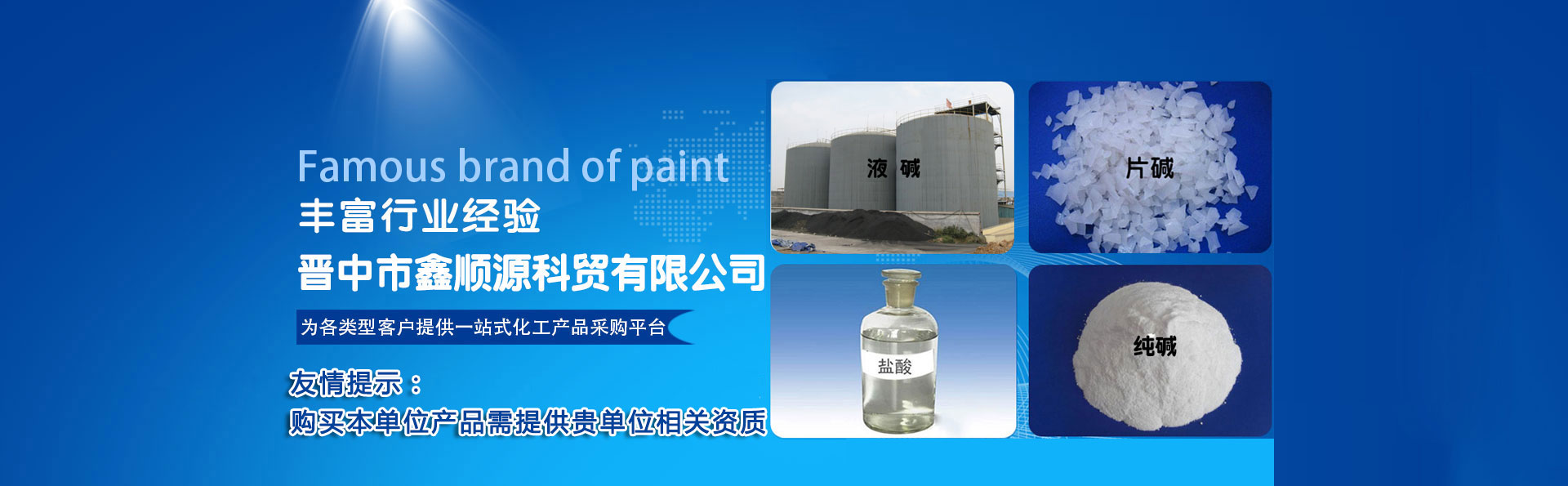 晉中市鑫順源科貿(mào)有限公司成立于2012年9月4日,位于榆社縣東大街大寺路,有安監(jiān)局頒發(fā)的中華人民共和國(guó)危險(xiǎn)化學(xué)品經(jīng)營(yíng)許可證和非藥品類易制毒化學(xué)品經(jīng)營(yíng)備案證明,主要經(jīng)營(yíng)鹽酸、次氯酸鈉、液堿 、 片堿  、純堿 、  硫酸 、 聚合氯化鋁、 氯化鈣、氯化鋇、氯乙酸、氨水、水處理劑等危險(xiǎn)化學(xué)品的銷售及運(yùn)輸......